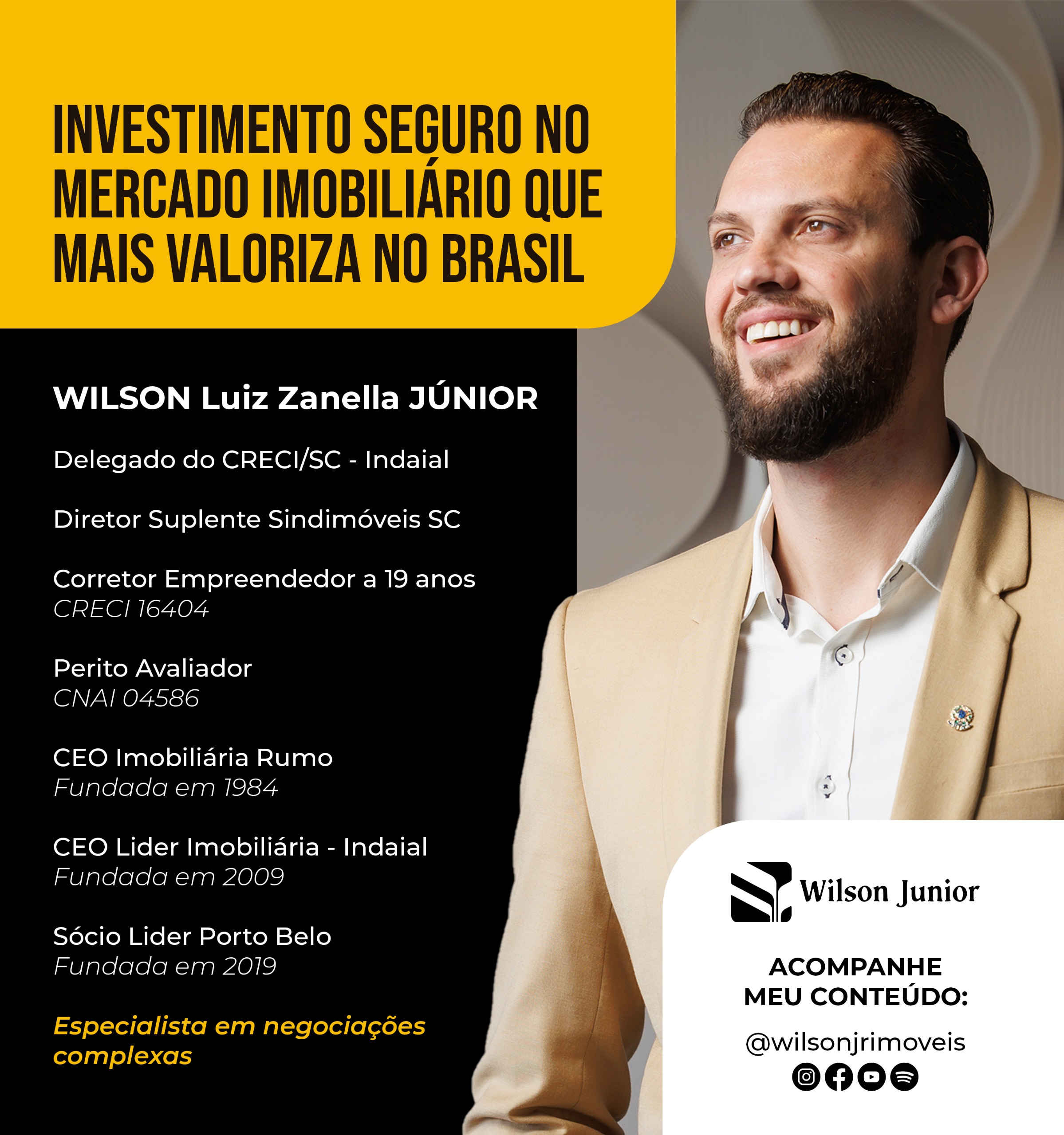 Wilson Luiz Zanella Júnior é Corretor de Imóveis especializado em imóveis de alto padrão e investimentos imobiliários seguros.